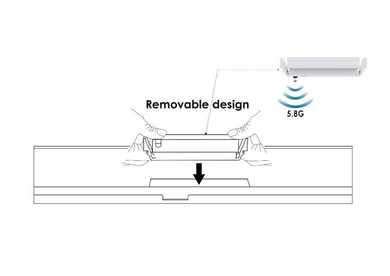 Capteur linéaire super compact à sortie de gradation MC004-S02ER, le capteur linéaire super compact à sortie de gradation convient à un luminaire linéaire intégré avec contrôle de gradation à trois niveaux et paramètres de télécommande.
